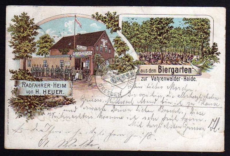 Ansichtskarte Vahrenwalder Haide Biergarten Restaurant Restauration Gasthof Gasthaus Wirtshaus Gaststätte Kneipe, gelaufen 1897 , Marke abgelöst