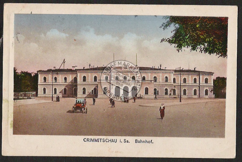 Crimmitschau Bahnhof Bahnhofsplatz, gelaufen 1920