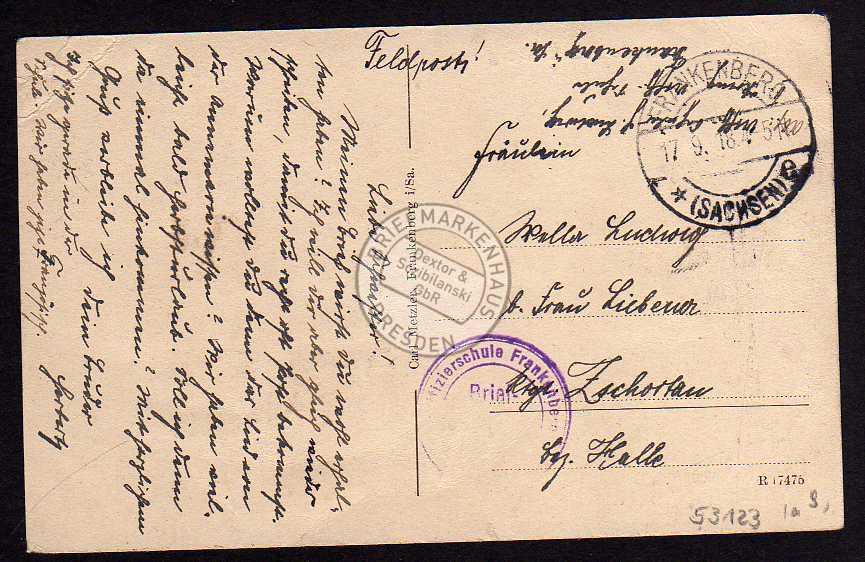 Frankenberg Unteroffiziersschule 1918 Feldpost