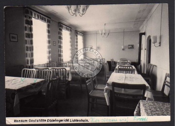 Ansichtskarte Lichtenhain Sebnitz Konsum Gaststätte Erblehngericht, gelaufen 1965