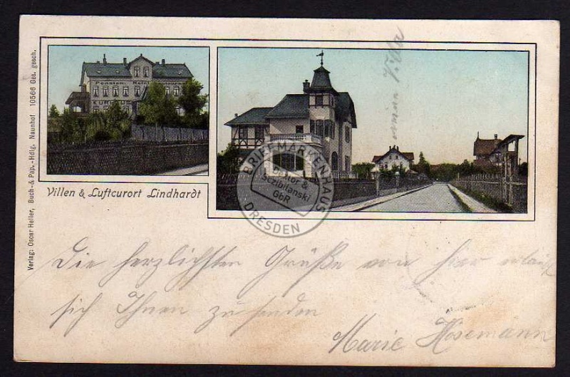 Ansichtskarte Lindhardt Naunhof Villen Luftkurort 1907, gelaufen 1907