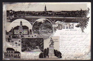 Litho Düben Mulde Bahnhof Denkmal Markt 1897