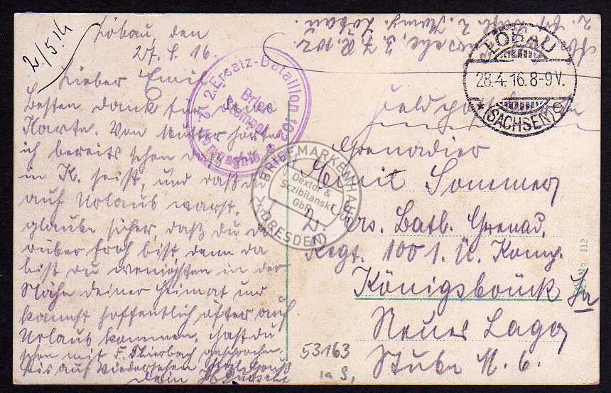 Löbau Jägerkaserne Feldpost 1916