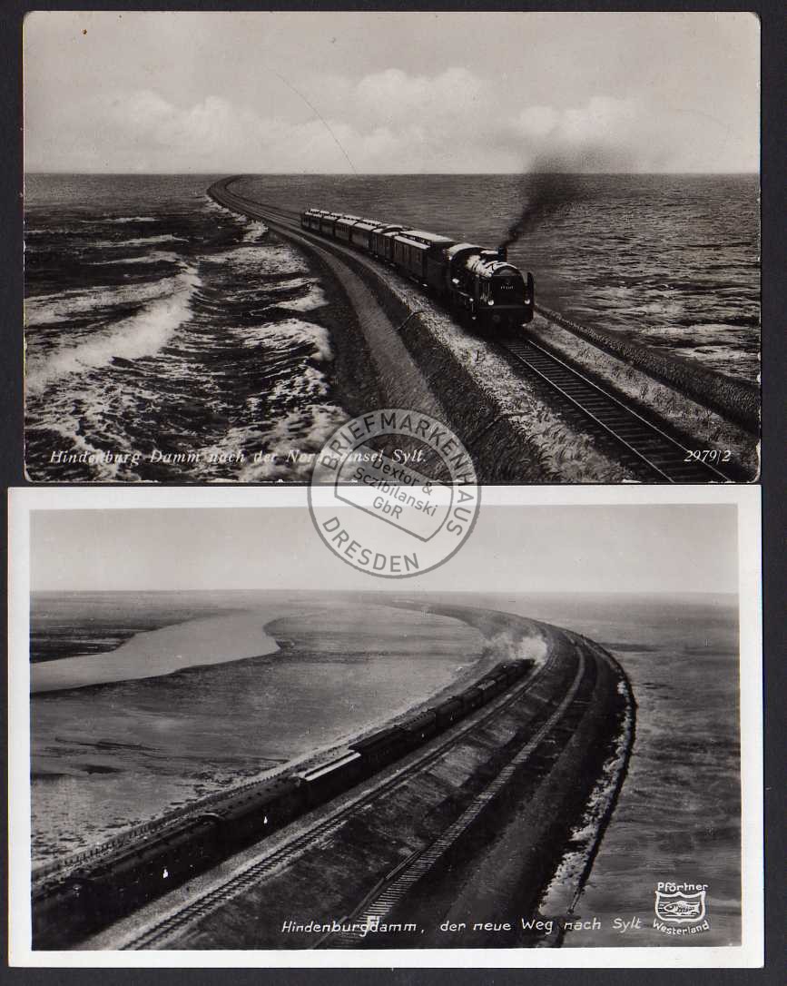 2 Ansichtskarte Sylt Hindenburg Damm 1931 Eisenbahn Zug Dampflok, ungelaufen beschrieben 1931