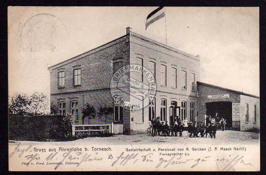 Ansichtskarte Ahrenlohe b. Tornesch 1907 Gastwirtschaft Pensionat v. R. Gercken, gelaufen 1907