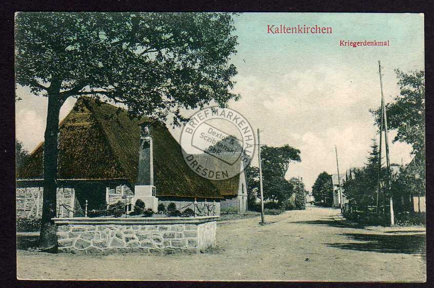 Ansichtskarte Kaltenkirchen Kriegedenkmal Häuser Reetdach, ungelaufen