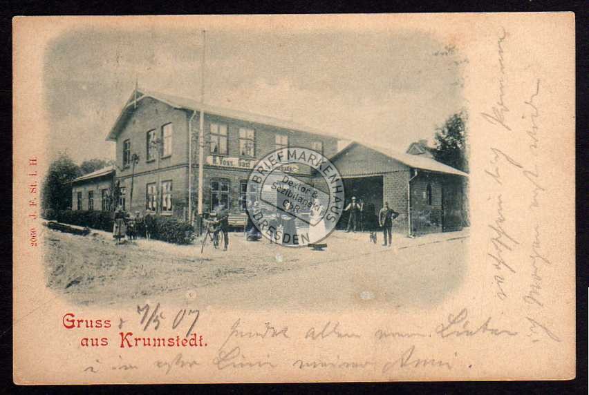 Ansichtskarte Krumstedt Gasthof Logirhaus 1907 Restaurant Restauration Gasthof Gasthaus Wirtshaus Gaststätte Kneipe, gelaufen