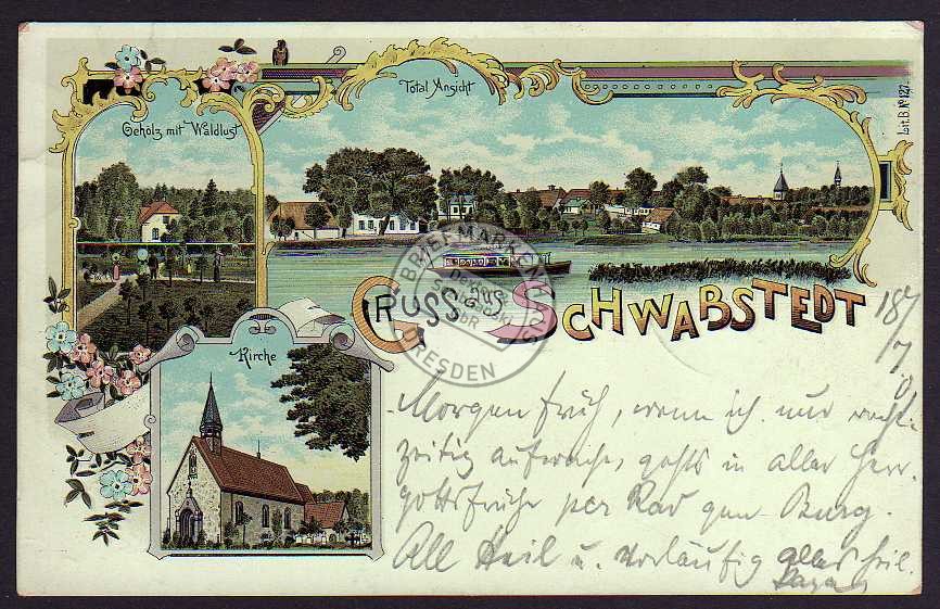 Litho Schwabstedt 1901 Waldlust Kirche Total