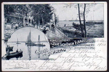 Ansichtskarte Schulau Wedel Elbe Etablissement Zur schönen Elbaussicht 1903, gelaufen 1903