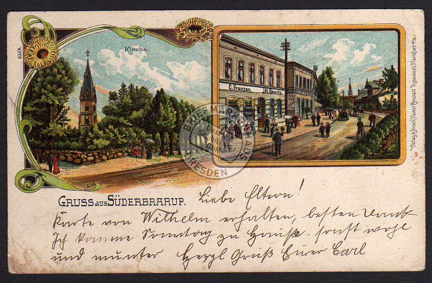 Ansichtskarte Süderbrarup Kirche C. Franzen 1904, gelaufen 1904