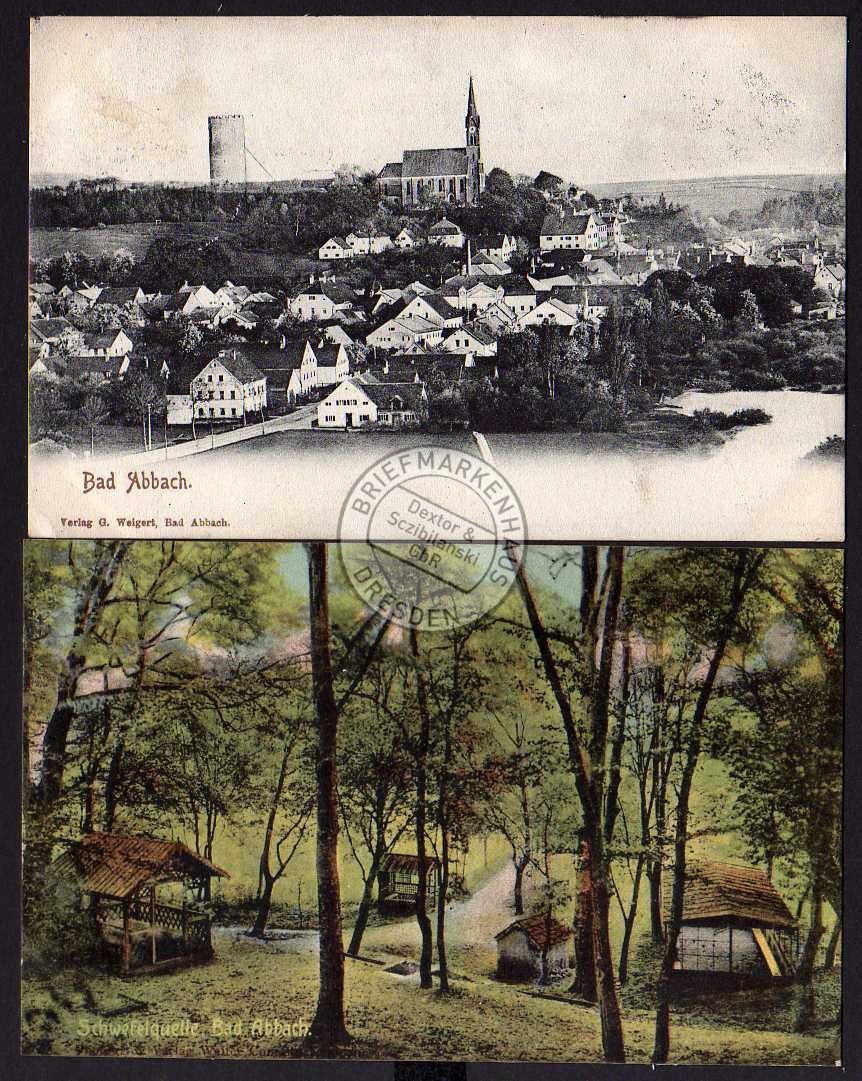 2 Ansichtskarte Bad Abbach Gesamtansicht Schwefelquelle, 2x gelaufen 1907