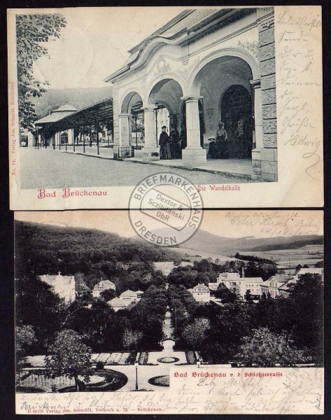 2 Ansichtskarte Bad Brückenau 1904 Wandelhalle Panorama, gelaufen