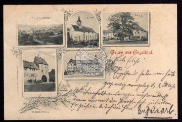 Ansichtskarte Engelthal Kirche Baum Linde Sanatorium 1900, gelaufen, aus Wikipedia: