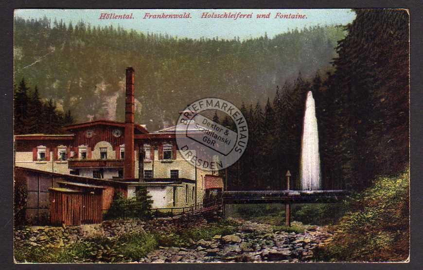 Ansichtskarte Höllental Frankenwald Holzschleiferei Fontaine 1926 Landkreis Hof, gelaufen 1926, fleckig