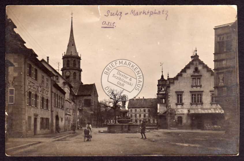 Ansichtskarte Sulz O. Elsaß Markt Hotel Gasthof, ungelaufen , oben 4 mm Riß