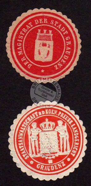 2 Vignetten Graudenz Grudziadz Magistrat Staatsanwaltschaft Landgericht, gelaufen