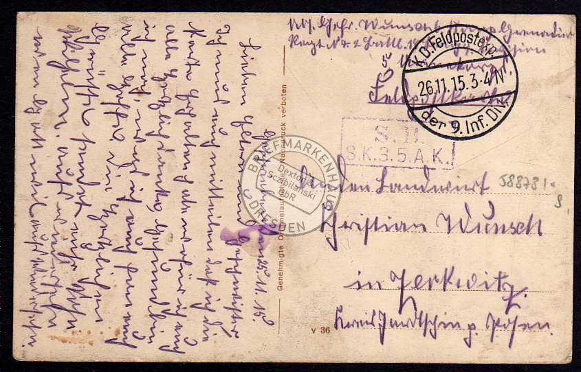 Ansichtskarte Dorfstraße in Frankreich 1915 Feldpost S.B. S.K.3.5.A.K., gelaufen